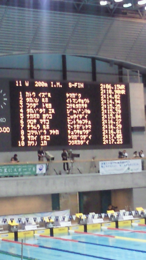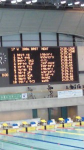 今日の予選の目玉は、稲田のりこ選手が女子100背に出場していたことだ。